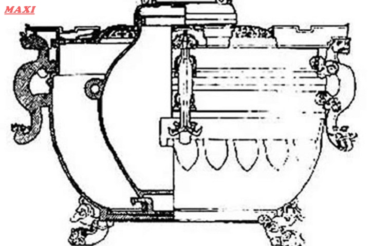 Ở bên trong là một dụng cụ có tên gọi là “Phẫu”, giống như một cái chĩnh được đặt cố định và không chạm đáy.