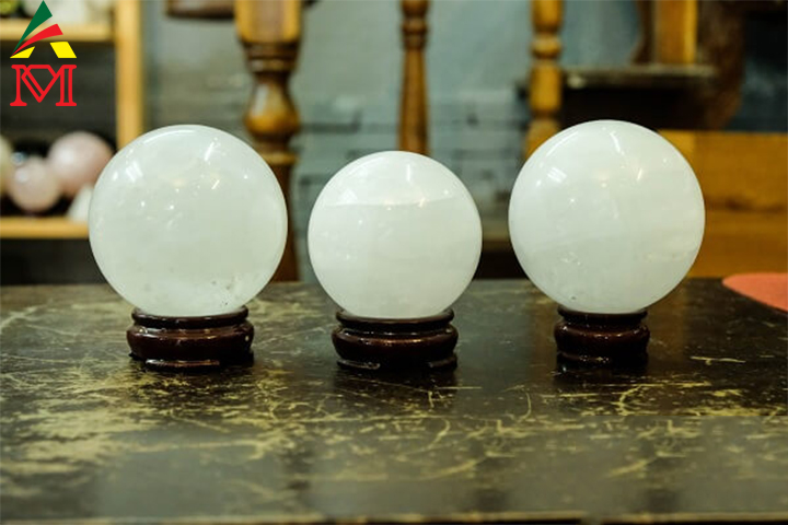 Quả cầu bằng đá thạch anh trắng là sự lựa chọn dành cho những người mệnh Thủy bởi vì Kim sinh Thủy. Ngoài màu này ra các bạn cũng có thể lựa chọn quả cầu có màu đen, xám, xanh nước biển,…..