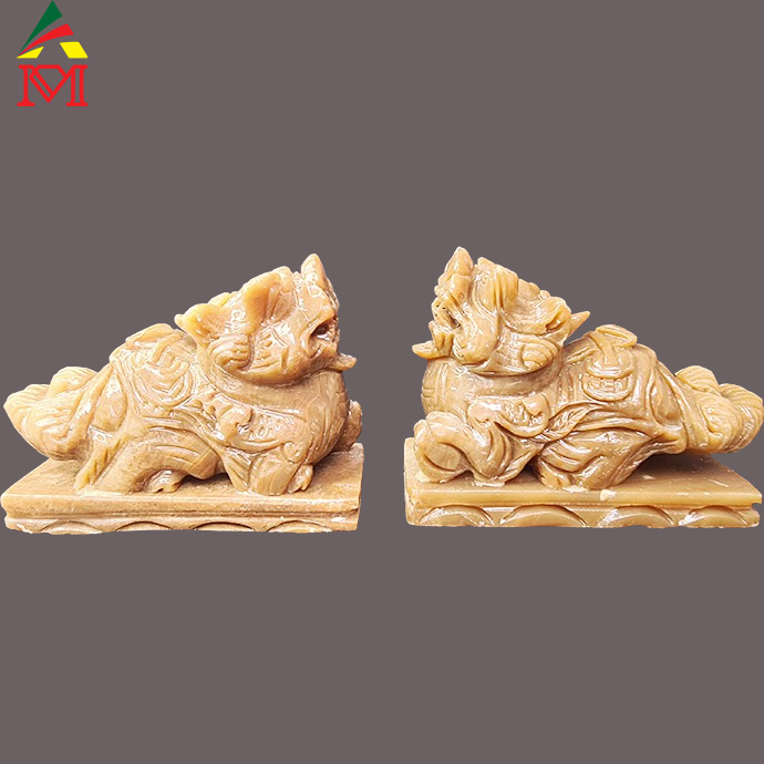 Thông tin Cặp Tỳ Hưu Đứng Đá Canxit Vàng Nâu Có Đế