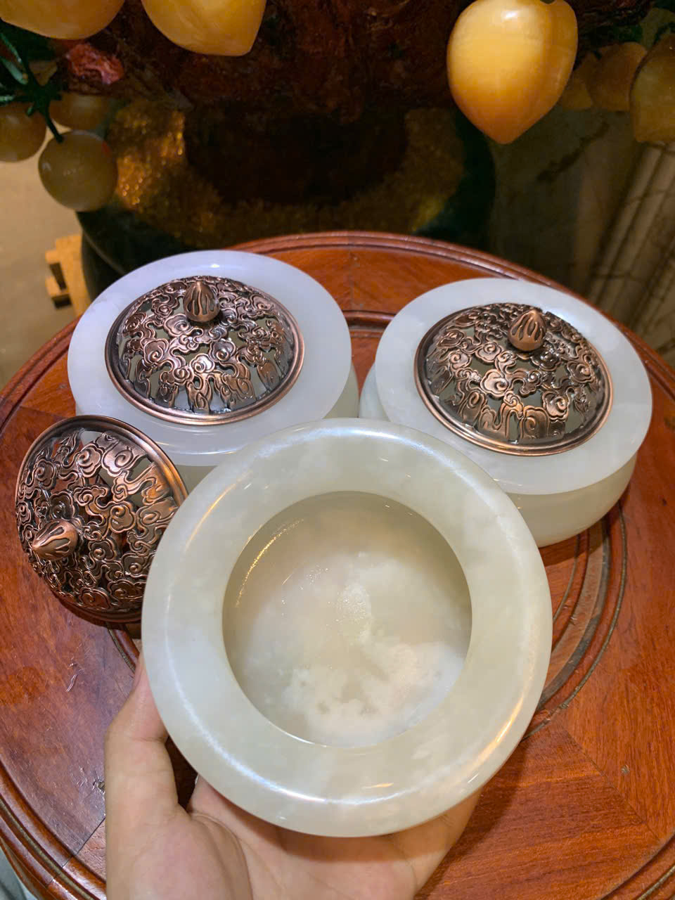 - Chất liệu: Ngọc Onyx nắp đồng.
