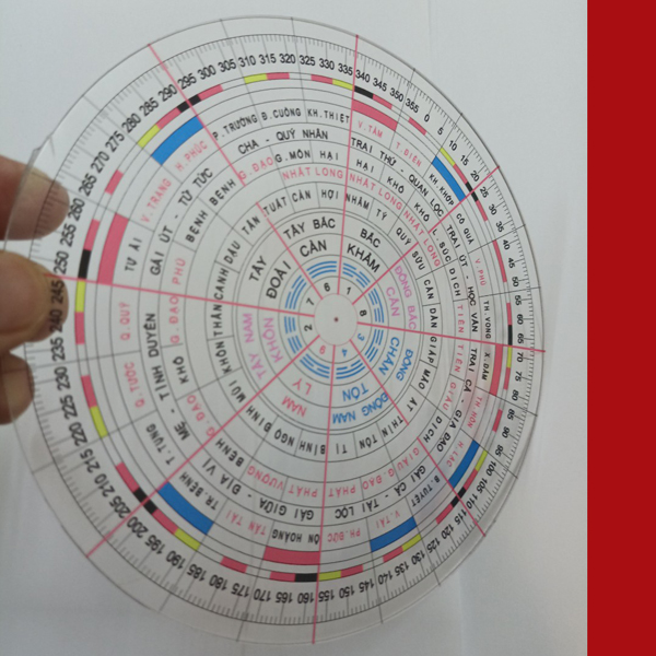 Thước lập cực phong thuỷ được thiết kế hình tròn dễ sử dụng, chất liệu meca dẻo, trong suốt, độ bền cao. Thước gồm 12 vòng phong thuỷ dùng trong dương trạch và âm trạch.