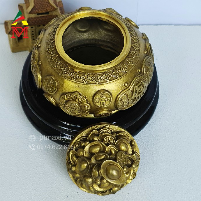 - Hình dáng: Bát đựng đồng tiền vàng, tiền xu cổ vàng.