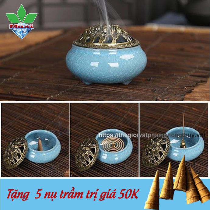 Lư hương đốt trầm gốm sứ cao cấp xanh ngọc