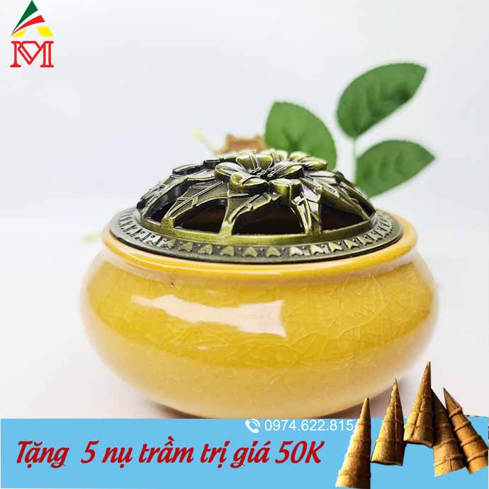 Lư Hương Đốt Trầm Gốm Sứ Cao Cấp Màu Vàng