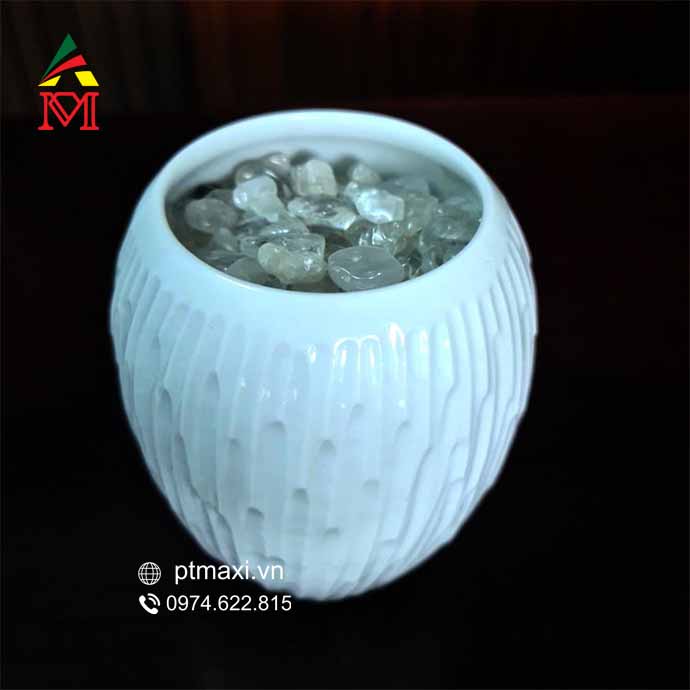 - Chất liệu: Bình gốm sứ, Đá Thạch Anh Trắng tự nhiên.