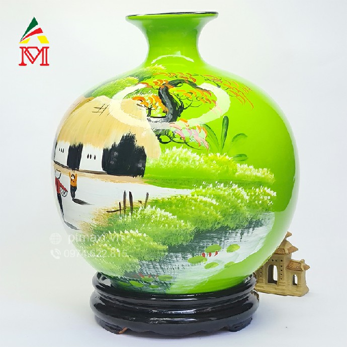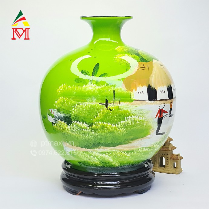 Thông Tin Bình Gốm Hút Lộc Men Sứ Trắng Cảnh Đồng Quê