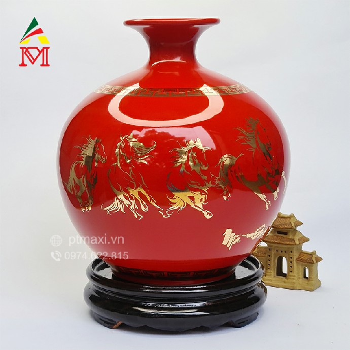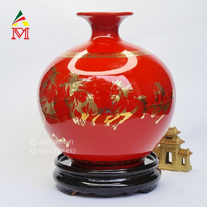 Thông Tin Bình Hút Lộc Gốm Sứ Đỏ Vẽ Mã Đáo Thành Công Chiêu Tài Lộc
