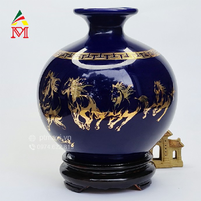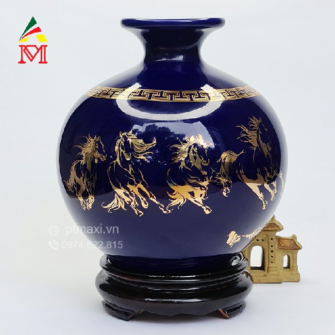 Thông Tin Bình Hút Lộc Gốm Sứ Xanh Tím Vẽ Mã Đáo Thành Công Chiêu Tài Lộc