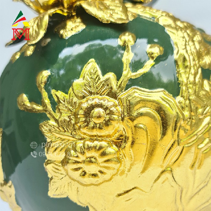 - Với màu gốm Xanh Ngọc đặc trưng, hoa văn được khắc nổi trên thân bình, với những đường nét uyển chuyển tinh tế.
