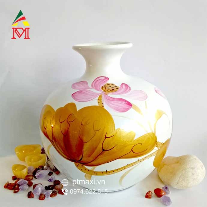 Thông Tin Bình Gốm Trắng Ngọc Vẽ Hoa Sen Hút Lộc Chiêu Hiền Tài