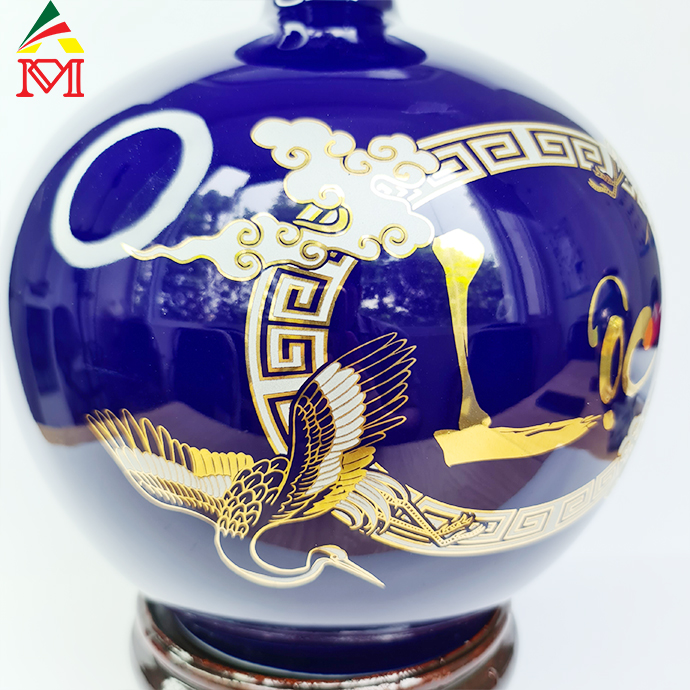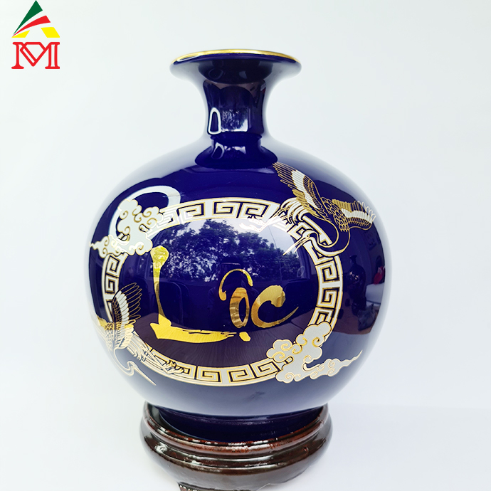 Bình Hút Lộc Gốm Sứ Men Xanh Tím Vẽ Chữ Lộc Trang Trí Phòng Khách