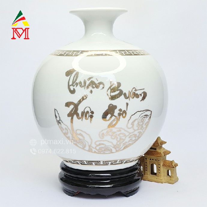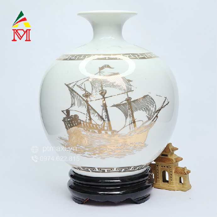 Bình Hút Lộc Gốm Sứ Trắng Vẽ Thuận Buồm Xuôi Gió