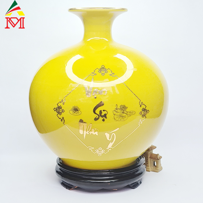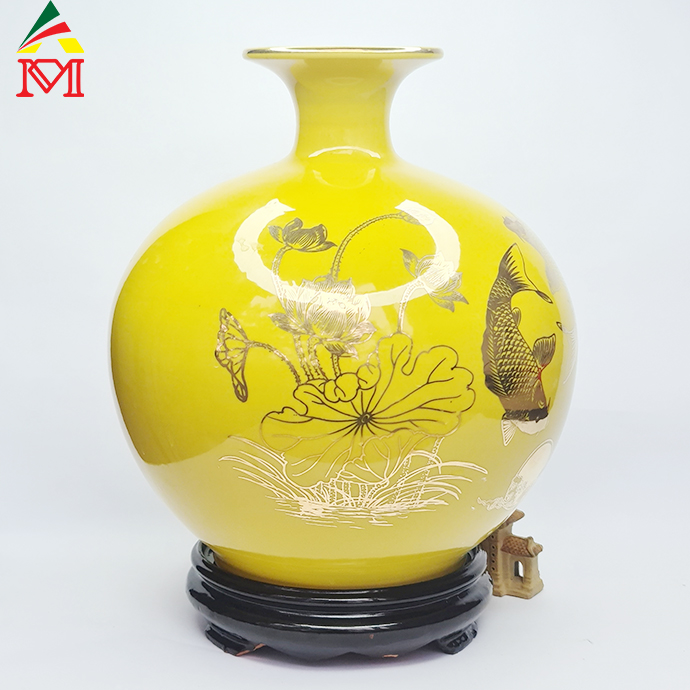 Bình Hút Lộc Gốm Sứ Vàng Vẽ Vạn Sự Như Ý Cá Chép Trông Trăng Bát Tràng