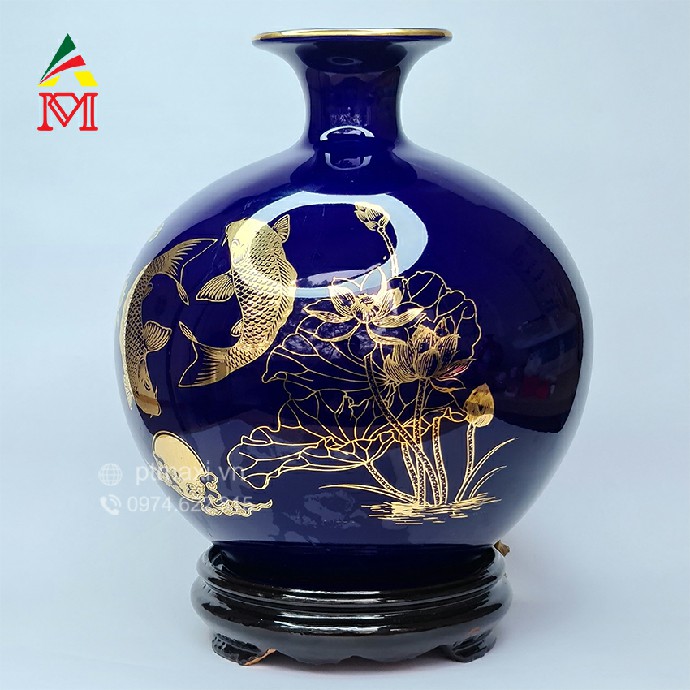 Thông Tin Bình Hút Lộc Gốm Sứ Xanh Tím Vẽ Vạn Sự Như Ý Cá Chép Trông Trăng Bát Tràng
