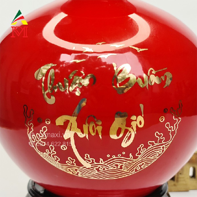 Thông Tin Bình Hút Lộc Gốm Sứ Đỏ Vẽ Vàng Thuận Buồm Xuôi Gió