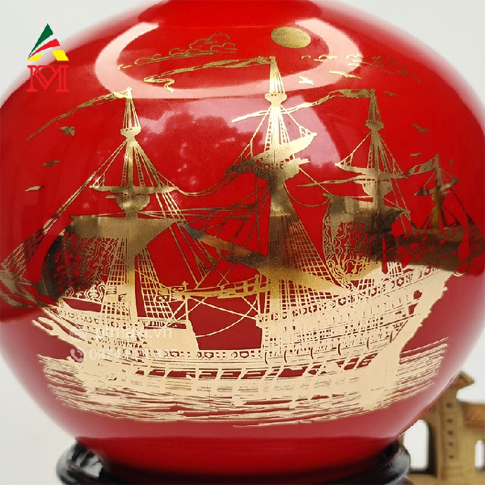 Bình Hút Lộc Gốm Sứ Đỏ Vẽ Vàng Thuận Buồm Xuôi Gió