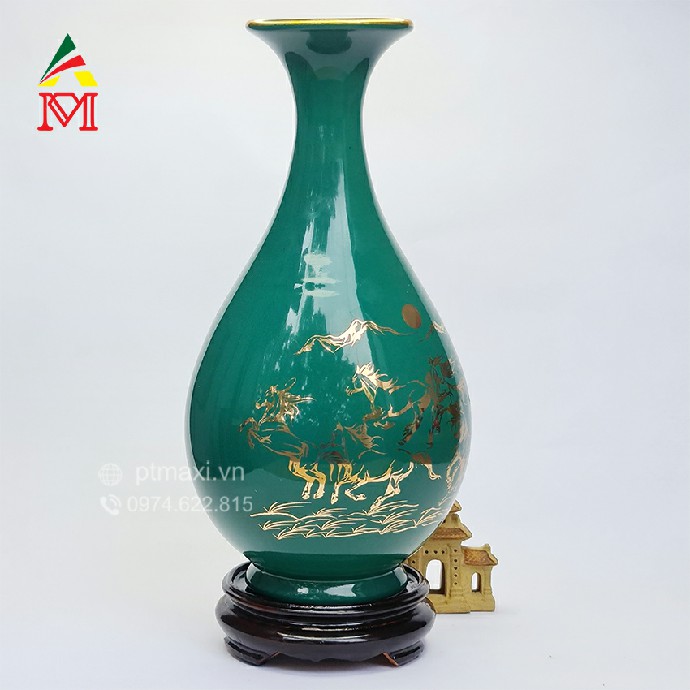 Vị Trí Đặt Bình Tỳ Bà Hút Lộc Gốm Sứ Xanh Lục Vẽ Mã Đáo Thành Công