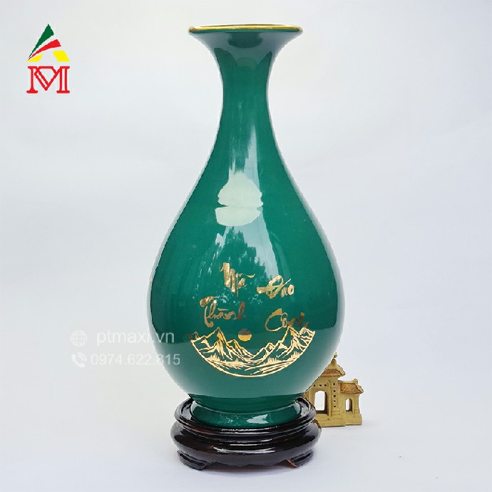 Bình Tỳ Bà Hút Lộc Gốm Sứ Xanh Lục Vẽ Mã Đáo Thành Công