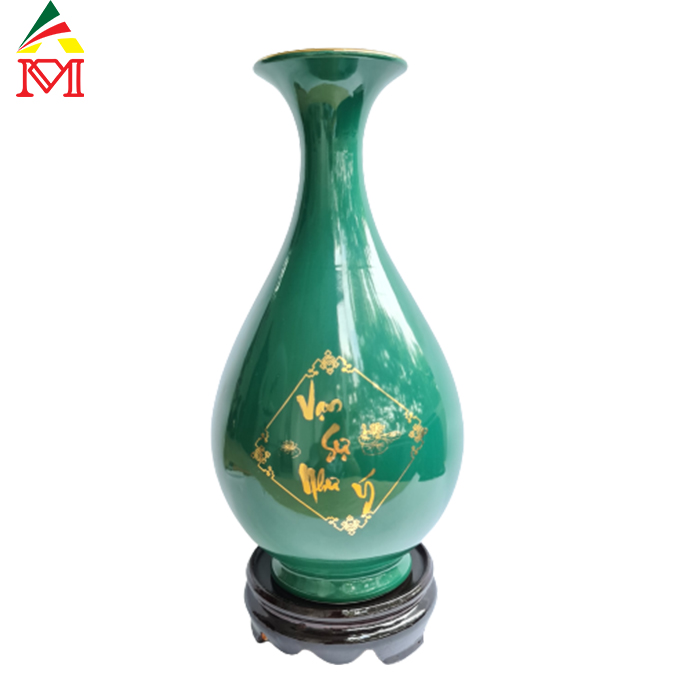 Bình Tỳ Bà Hút Lộc Gốm Sứ Xanh Lục Vẽ Vạn Sự Như Ý