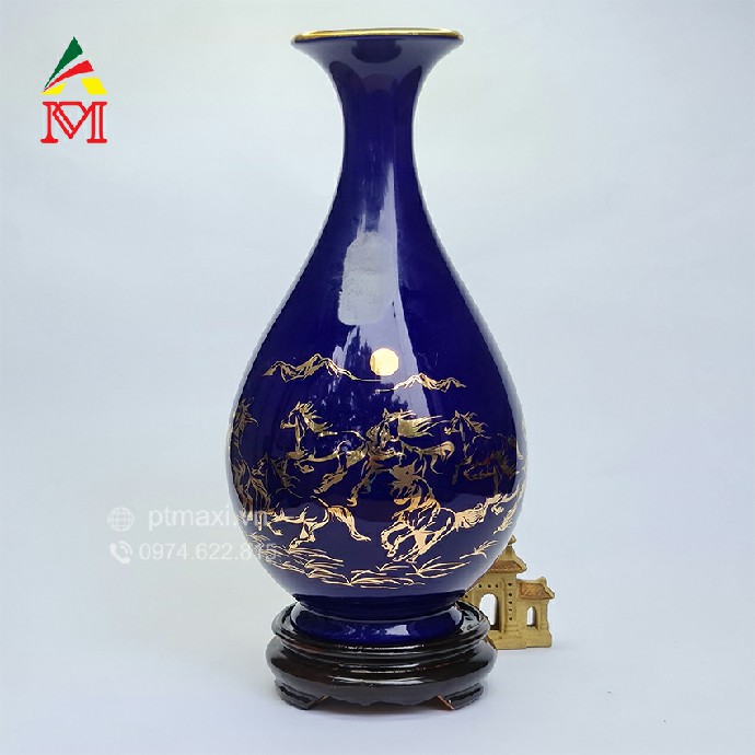 Thông Tin Bình Tỳ Bà Hút Lộc Gốm Sứ Xanh Tím Vẽ Mã Đáo Thành Công