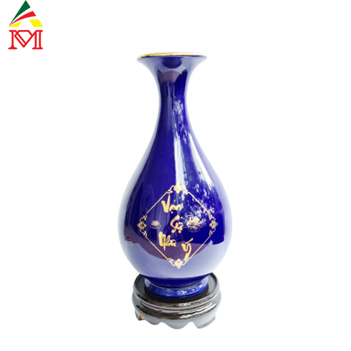 Bình Tỳ Bà Hút Lộc Gốm Sứ Xanh Tím Vẽ Vạn Sự Như Ý