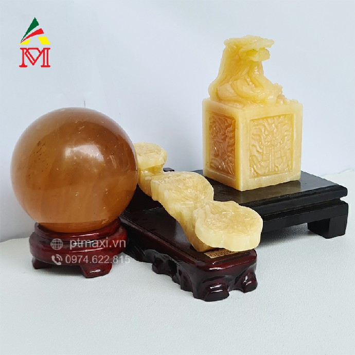 + Quả cầu đá (Thạch Anh Vàng): Đường kính 13cm, Nặng 2,2 kg.