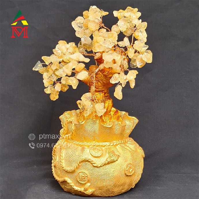 Cây Tài Lộc Thạch Anh Vàng (Hình Túi Tiền)