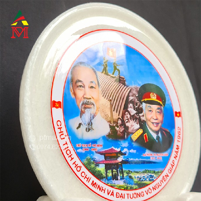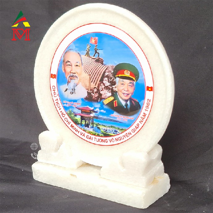 Tìm hiểu thêm về vật phẩm quà lưu niệm đĩa đá trắng tôn vinh Hồ Chí Minh & Võ Nguyên Giáp tại web: thegioivatphamphongthuy.vn