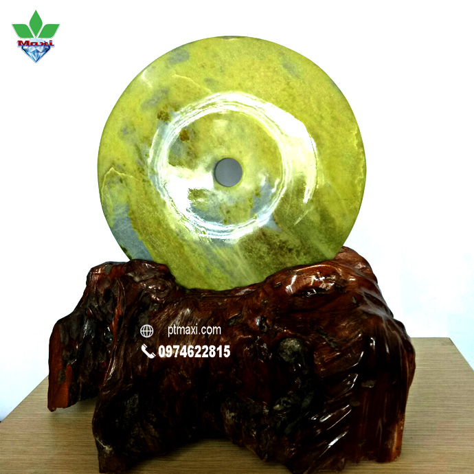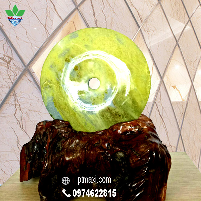 - Hình dáng: Hình đồng tiền kèm giá đế gỗ