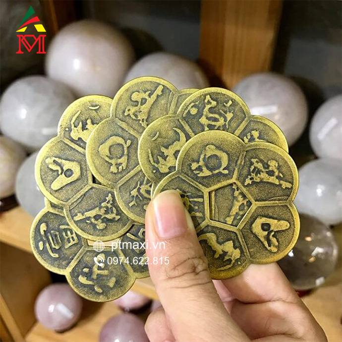 - Cách sử dụng và bố trí: Bày trí tiền Mai Hoa phải tuân theo các nguyên tắc trong phong thủy, có thể trưng bày tại một số vị trí như trên bàn làm việc, phòng khách, giá sách, trong văn phòng hay trang trí tại các cửa hàng. Ngoài ra, có thể bố trí tiền Mai Hoa trên két sắt để thu hút tiền tài, trên bàn thờ hoặc treo trên tường hay treo ngay trước cửa ra vào để đón vượng khí vào ngôi nhà của bạn. Nên chọn đặt tại một số hướng cát tinh tốt như Lục Bạch, Diên Niên, Sinh Khí để gia tăng tiền bạc và sự giàu có.