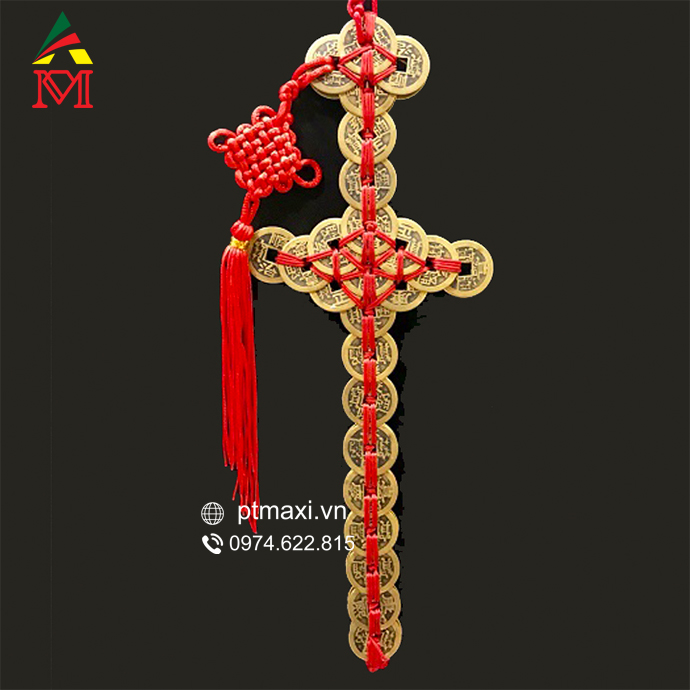 Theo phong thủy, tiền xu là một trong những vật phẩm quan trọng. Ngày xưa, người ta dùng tiền xu đục lỗ hình tròn tượng trưng cho trời, giữa là lỗ hình vuông tượng trưng cho đất. Trời ngoài đất trong tượng trưng cho quẻ Thái tức sự thịnh vượng. Tùy theo niên hiệu các đời vua mà trên tiền xu có khắc chữ khác nhau Những đồng tiền xu là biểu tượng của nguồn tài lộc và của cải. Cát khí của nó không những làm gia tăng tài lộc mà con đem lại nhiều may mắn về công danh, sự nghiệp và giải trừ tai họa, tiểu nhân…