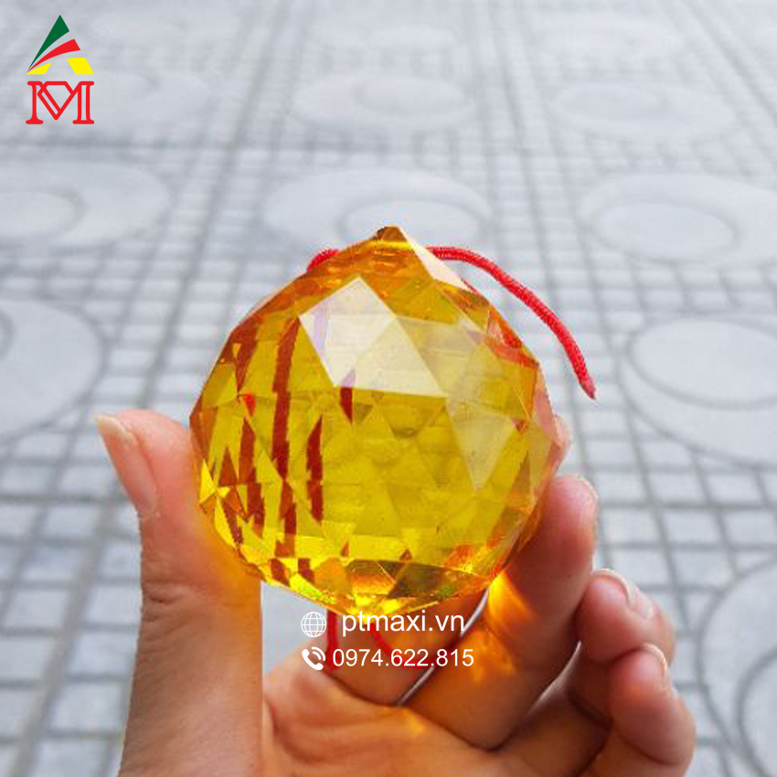 Quả Cầu Đa Giác Pha Lê Vàng 45mm- Hóa sát khí xấu, cửa thông nhau