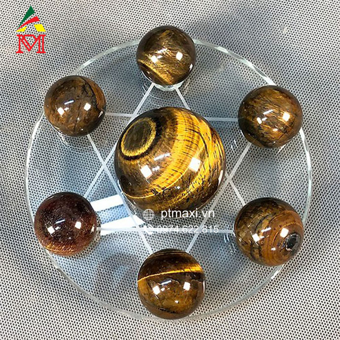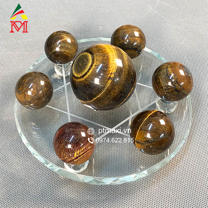 Thất tinh trận đá Thạch Anh mắt hổ nâu vàng là 1 bộ sản phẩm gồm 7 quả cầu phong thủy đá được bố trí trên mặt đĩa tròn.
