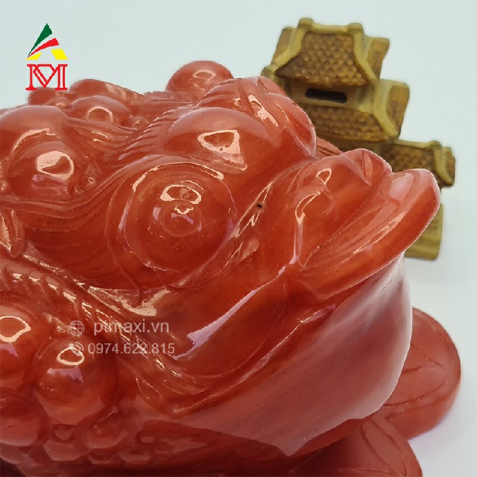 - Thiềm thừ Đá Obsidian Đỏ thường ngậm đồng tiền cổ trong miệng, thể hiện cóc mang tài lộc vào nhà.