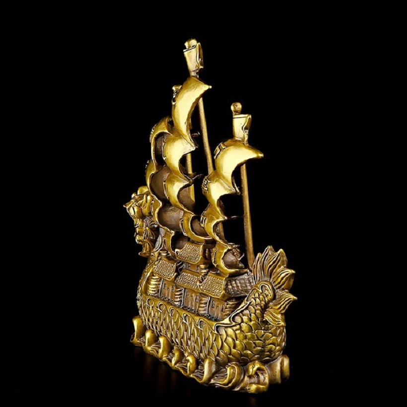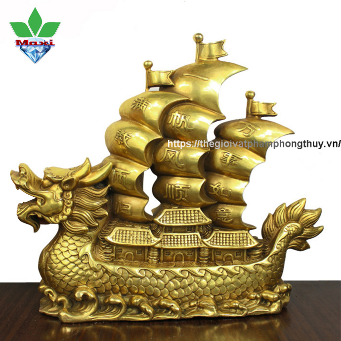 - Thuyền rồng đồng có nghĩa là thuận buồm xuôi gió được chế tác từ chất liệu đồng vàng và đỏ trong ngũ hành tương sinh tương khắc thì đồng là kim loại thuộc hành Kim phù hợp với những người mệnh Thủy ( Kim sinh Thủy ), hơn nữa hình ảnh cánh buồm lướt trên những con sóng lớn đại dương đại diện cho biểu tượng của Thủy.