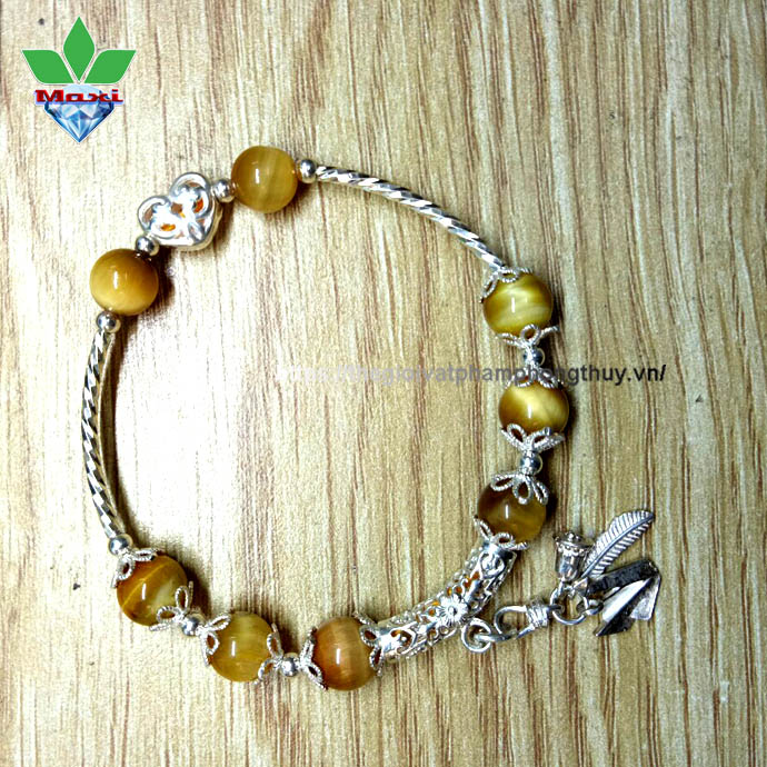 Thông tin Vòng Tay Thạch Anh Mắt Hổ Vàng Mix Bạc 925 S1