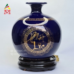 Bình Hút Lộc Xanh Tím Vẽ Vàng Chữ Phát Lộc