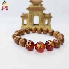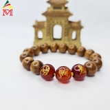 Vòng Tay Tam Hợp Thân - Tý - Thìn Mã Não Đỏ Đan Gỗ Bách Xanh Tự Nhiên