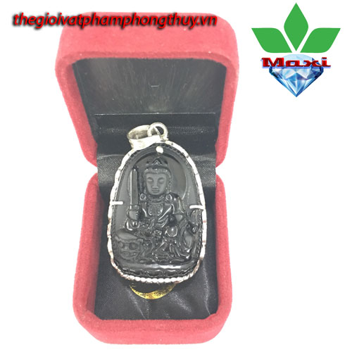 Thông tin Mặt Phật Bản Mệnh Văn Thù Bồ Tát Obsidian Đen Bọc Bạc