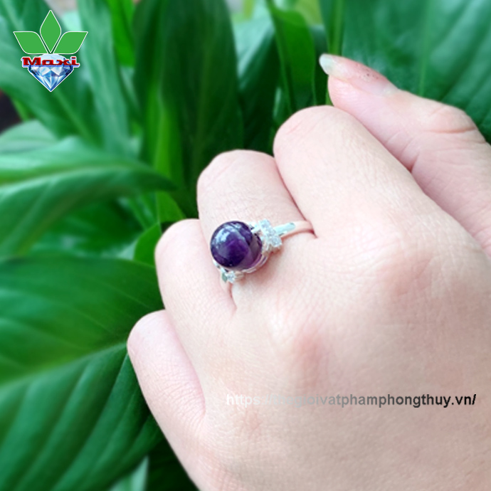 - Nhẫn bạc đính đá thạch anh tím đậm được các thợ thủ công thiết kế tỷ mỷ, thường được phát nữ sử dụng cho dòng nhẫn nữ cao cấp.