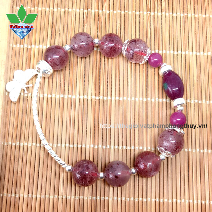 Ý Nghĩa Vòng Tay Thạch Anh Dâu Tây Hồng Charm Cánh Bướm Bạc 925