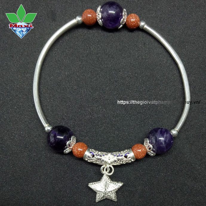 Ý Nghĩa Vòng Tay Thạch Anh Tím Mix Kim Sa Charm Ngôi Sao Bạc 925