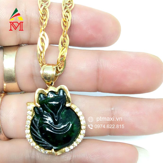 - Làm từ đá Diopside 3A Mix Hồ Ly Ngọc Cẩm Thạch Bọc Vàng 10K