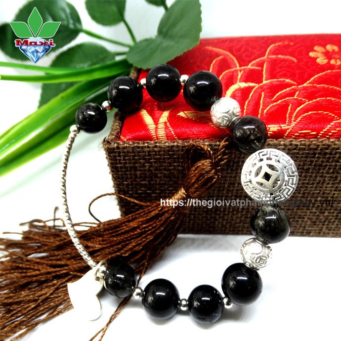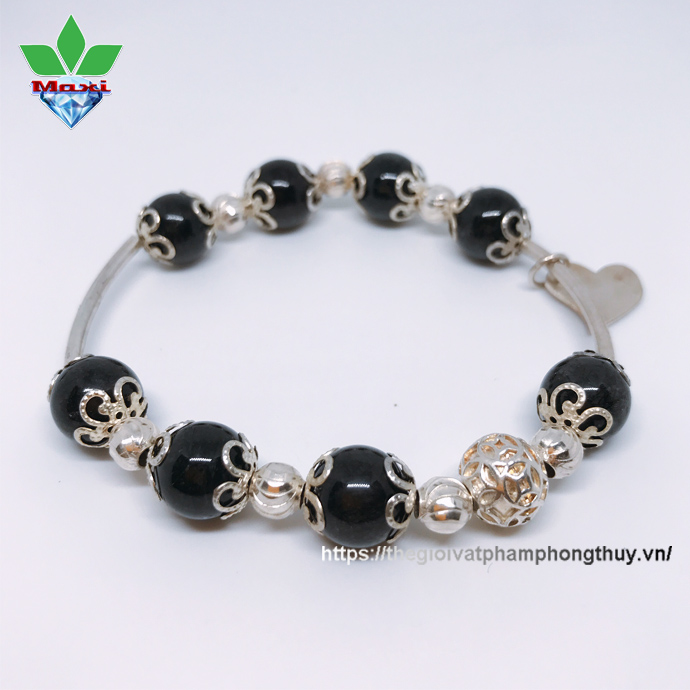 Ý Nghĩa Vòng Tay Thạch Anh Đen Mix Bi Kim Tiền, Trái Tim Bạc 925 S2