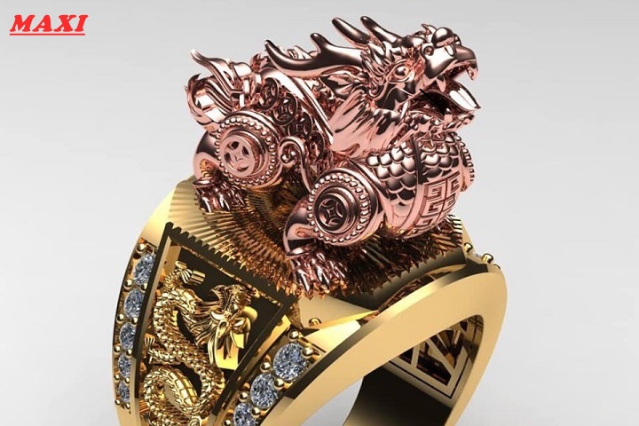 Nhẫn Rồng vàng đính đá quý tự nhiên đẹp.