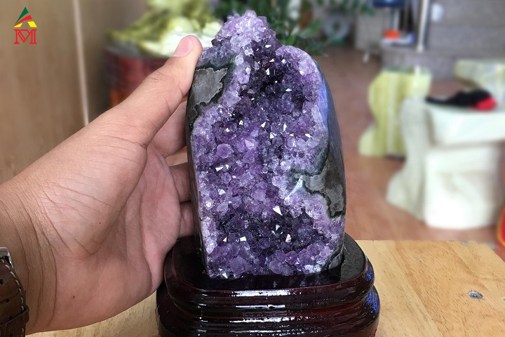 Hốc đá thạch anh tím tự nhiên được trưng bày tại phòng khách.