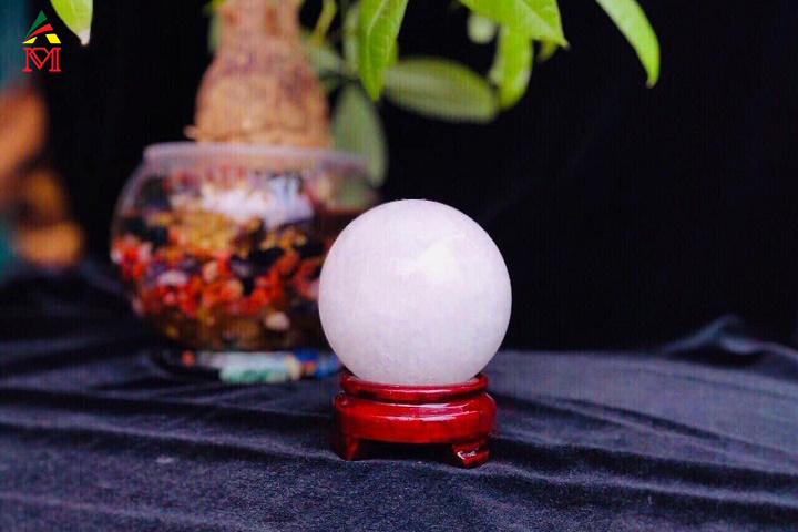 Quả cầu phong thủy đá thạch anh trắng phù hợp với người mệnh kim.