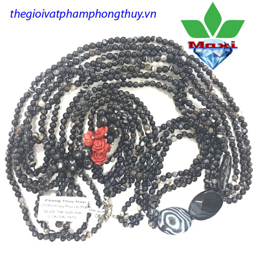 Dây Chuyền Thạch Anh Đen Hoa Đỏ