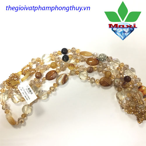 - Thạch anh vàng, hạt tròn, lu thống xâu chuỗi thành dây chuyền.