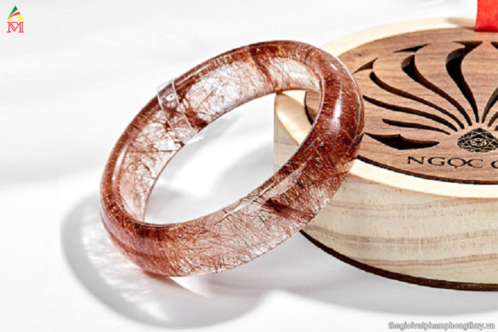 Vòng thạch anh tóc đỏ liền khối từ thương hiệu Phong Thủy MAXI có giấy kiểm định đầy đủ.